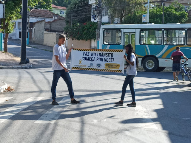 A Secretaria de Ordem Públicas e Políticas de Segurança finalizou as ações do Maio Amarelo com uma simulação de acidente de trânsito. Durante todo o mês, agentes da Guarda Civil Municipal e Guarda Civil Mirim realizaram trabalho de conscientização entre os motoristas e motociclistas, através de panfletagem e conversa, para alertar sobre o perigo das imprudências no trânsito.